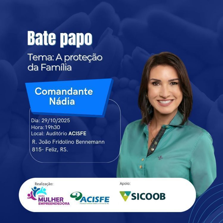 Bate papo com a Comandante Nádia, evento gratuito para mulheres
